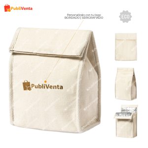 Imagen referencial*Bolsa térmica en resistente material 100% algodón de 330g/m2. Compartimento principal con cierre de velcro e interior isotermo de aluminio. Capacidad 2,3l.- Especificaciones artículo