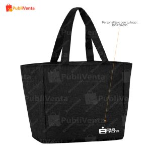 Imagen referencial*Innovadora bolsa térmica en papel laminado, resistente a las salpicaduras de agua y con interior en aluminio. Tamaño 43×33+14 cm, con cierre de cremallera y amplio bolsillo en frontal. Asas medianas reforzadas de 45 cm, libre de BPA.- Especificaciones artículo