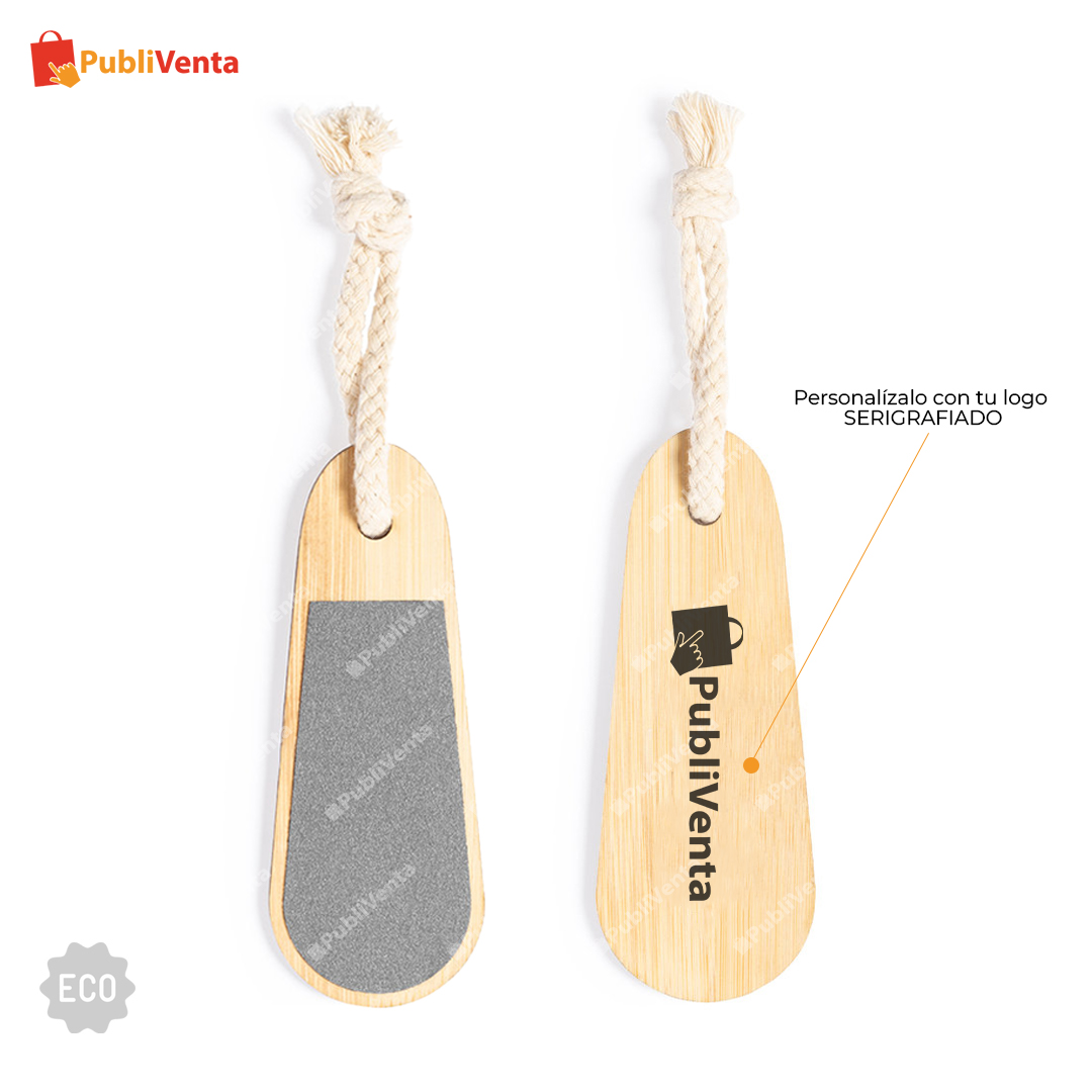 Lima de línea nature con cuerpo fabricado en bambú y cordón de transporte en algodón.