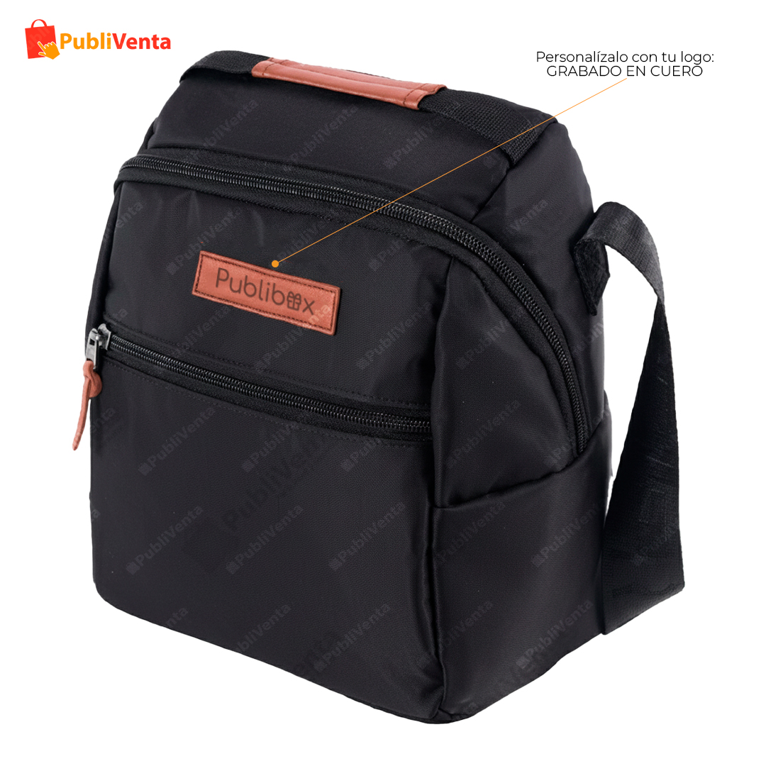 Cinta especial, forro térmico, jalador grande, cierre de plástico de dientes grandes del mismo color de la lonchera, compartimiento para botella, regulador de metal, estructura rígida de la lonchera